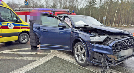 (czytaj więcej)Zderzenie dwóch samochodów osobowych. Poszkodowana jedna osoba