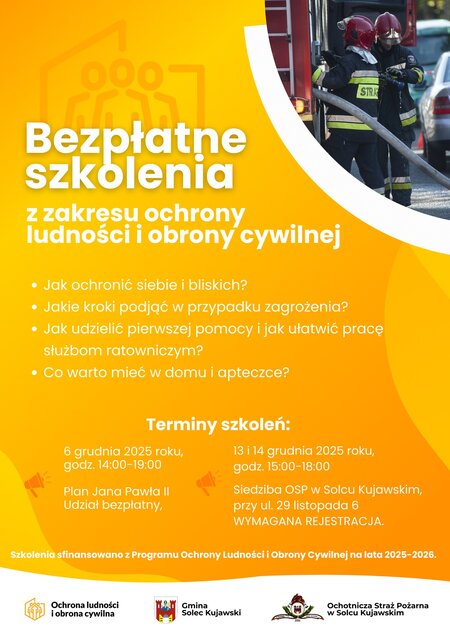 Burmistrz Solca Kujawskiego oraz OSP Solec Kujawski zapraszają mieszkańców na #bezpłatne szkolenia i warsztaty z zakresu ochrony ludności i obrony cywilnej.