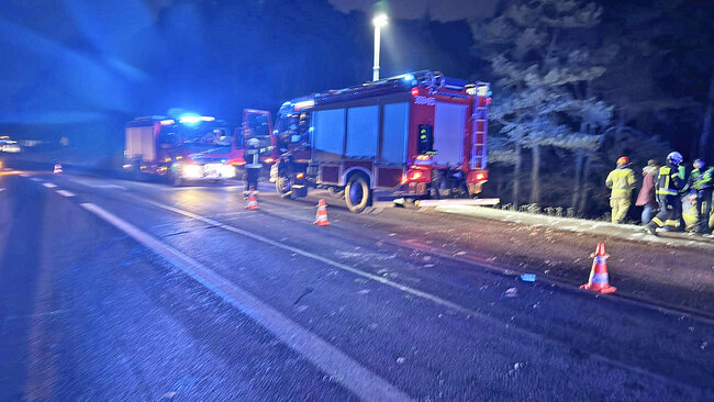 Udział w zdarzeniu prowadzą trzy zastępy straży pożarnej, Zespół Ratownictwa Medycznego oraz policja, która ustala przyczyny i okoliczności zdarzenia. Występowały spore utrudnienia na drodze. Ruch w obu kierunkach był całkowicie zablokowany z powodu prowadzonych działań.