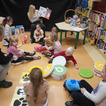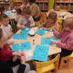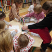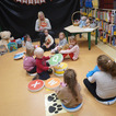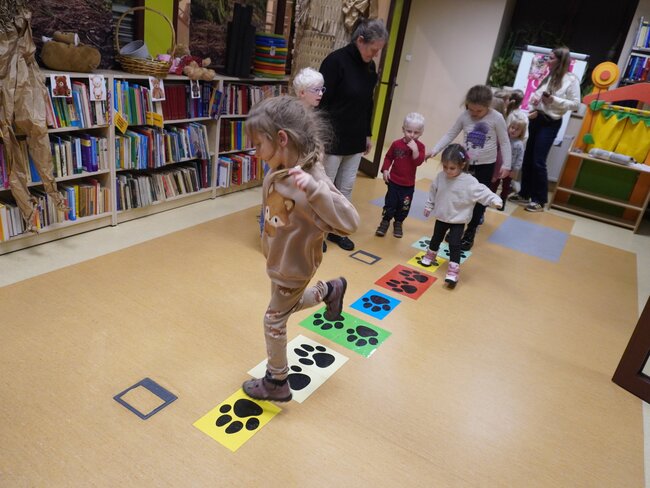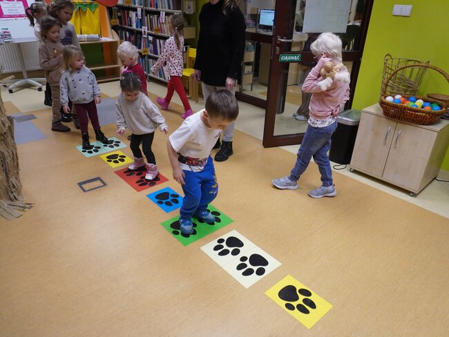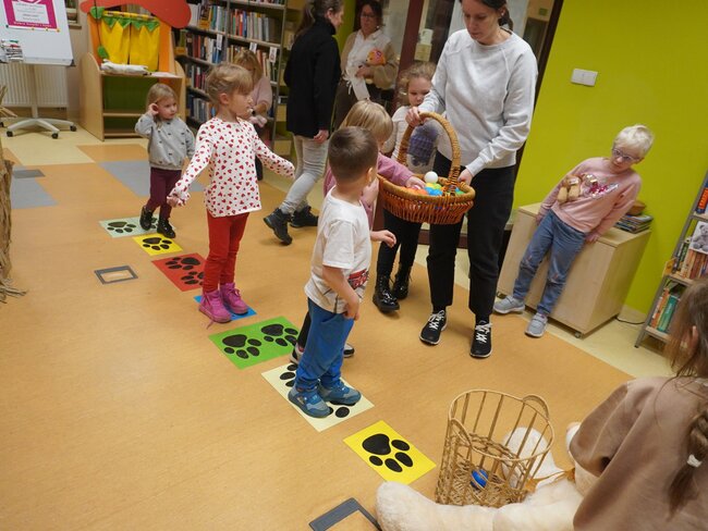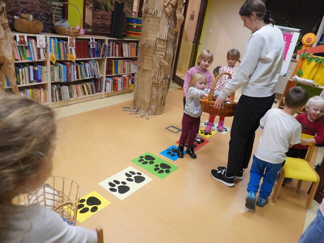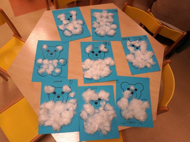 Potem ruszyły prace twórcze: dzieci robiły puchate misie z waty i układały misiowe puzzle. Odwiedziliśmy też Szpital Pluszowego Misia, gdzie każdy mógł zbadać swojego pluszaka, przykleić plasterek i wypisać receptę Był również czas na ruch i zabawy: skakanie po niedźwiedzich śladach, rzucanie do misiowego kosza i szukanie misiów do pary.