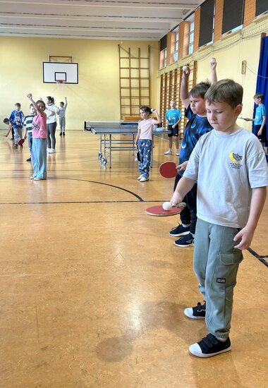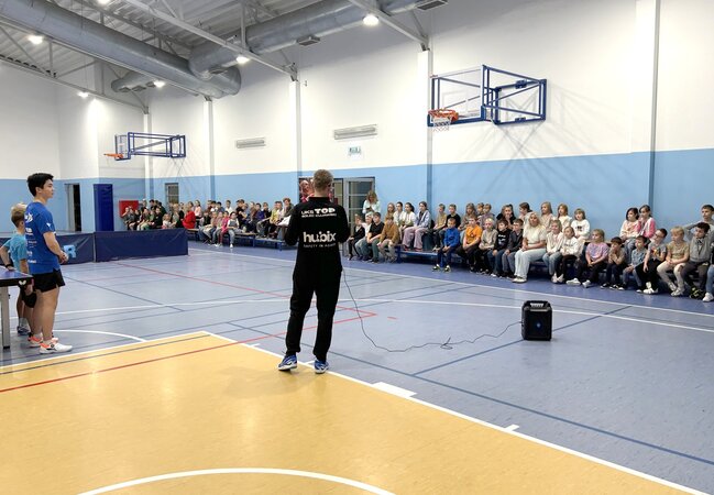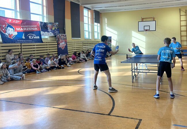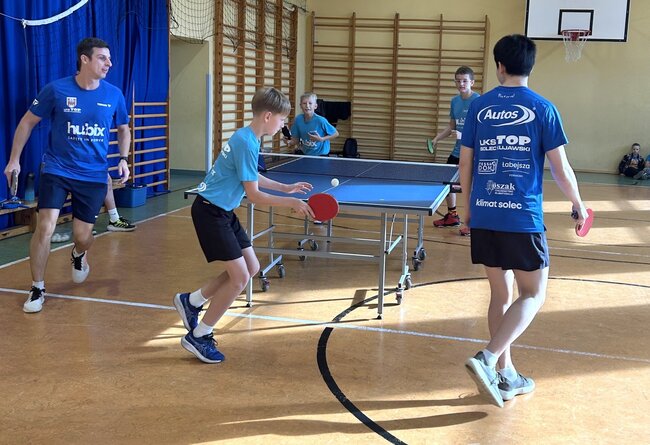 Na spotkaniach przybliżyliśmy tajniki naszej dyscypliny, pokazaliśmy elementy tenisowego treningu, przeprowadziliśmy konkursy oraz zachęciliśmy dzieci do podjęcia treningów tenisa stołowego (np w UKS Top). Jako Mistrz wystąpił gracz naszej pierwszoligowej drużyny Won Bae, mający w dorobku trzy medale Mistrzostw Świata kadetów.