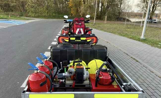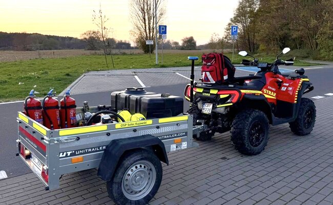 Strażacy z OSP Solec Kujawski przygotowali również specjalną przyczepkę gaśniczą przystosowaną do pracy z nowym pojazdem. Wyposażono ją w zbiornik na wodę, motopompę, armaturę wodną oraz podręczny sprzęt gaśniczy i burzący. Taki zestaw pozwala skutecznie prowadzić działania w miejscach o utrudnionym dojeździe, szczególnie na terenach leśnych, łąkach i obszarach podmokłych.