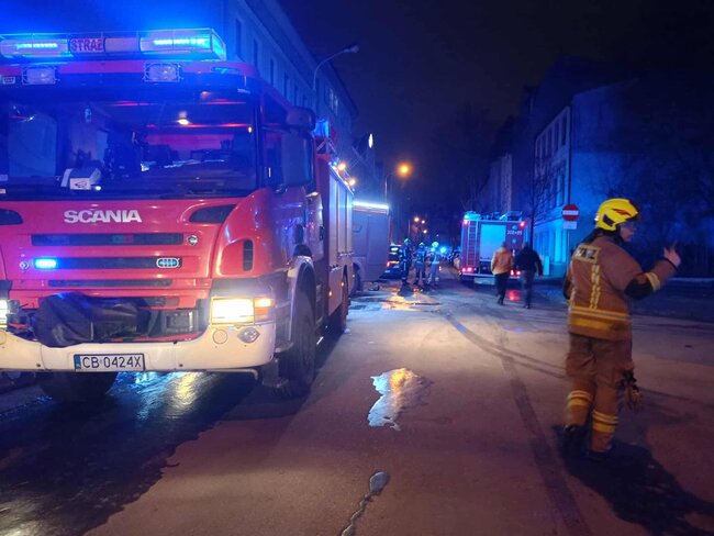 We wtorkowy wieczór, 3 lutego 2026 r., po godz. 21.00 w Bydgoszczy przy ul. Racławickiej #wybuchł pożar w trzykondygnacyjnym budynku hotelu pracowniczego.