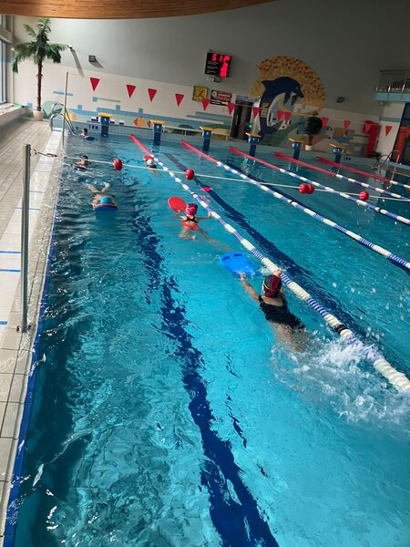 Uczniowie klas III szkół podstawowych z terenu naszej gminy uczestniczą w kursie nauki pływania, podczas którego pod okiem wykwalifikowanych instruktorów zdobywają i doskonalą swoje umiejętności, świetnie się bawią i nabierają pewności siebie w wodzie. Zajęcia to nie tylko nauka techniki pływania, ale również wspaniała przygoda, rozwój kondycji fizycznej, nauka współpracy i odpowiedzialności. Dzieci z ogromnym zaangażowaniem uczestniczą w lekcjach, a każdy tydzień przynosi nowe postępy i jeszcze więcej uśmiechu!