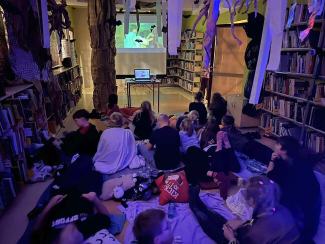 W Filii dla Dzieci działo się mnóstwo wspaniałych rzeczy! Młodzi uczestnicy byli bardzo zaangażowani w zajęcia „Straszna noc w bibliotece”, a podczas seansu filmu „Biuro Detektywistyczne Lassego i Mai. Rabuś z pociągu” panowało pełne skupienie i filmowa magia