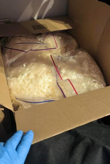 Łącznie zabezpieczono blisko 50 kg kryształu, prawie 25 kg zielonego suszu roślinnego, grzyby halucynogenne, kilka gramów białego proszku, 21 tabliczek czekolady z najprawdopodobniej grzybami halucynogennymi. W mieszkaniu znajdowało się także kilkaset opakowań e-papierosów bez polskich znaków akcyzy, waga elektroniczna, folia do zgrzewania oraz znaczna ilość gotówki.