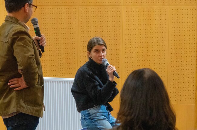 Po seansie przyszedł czas na rozmowę — pełną pasji, ciekawych pytań i inspirujących odpowiedzi. Młodzież i dorośli pytali o kulisy pracy montażysty, o to, jak rodzi się rytm filmu, jak emocje łączy się w całość za pomocą cięć i dźwięków. Sandra zdradziła nam też kilka ciekawostek z planu — między innymi tę, że Jakub Gierszał, odtwórca głównej roli, był jednocześnie producentem filmu!